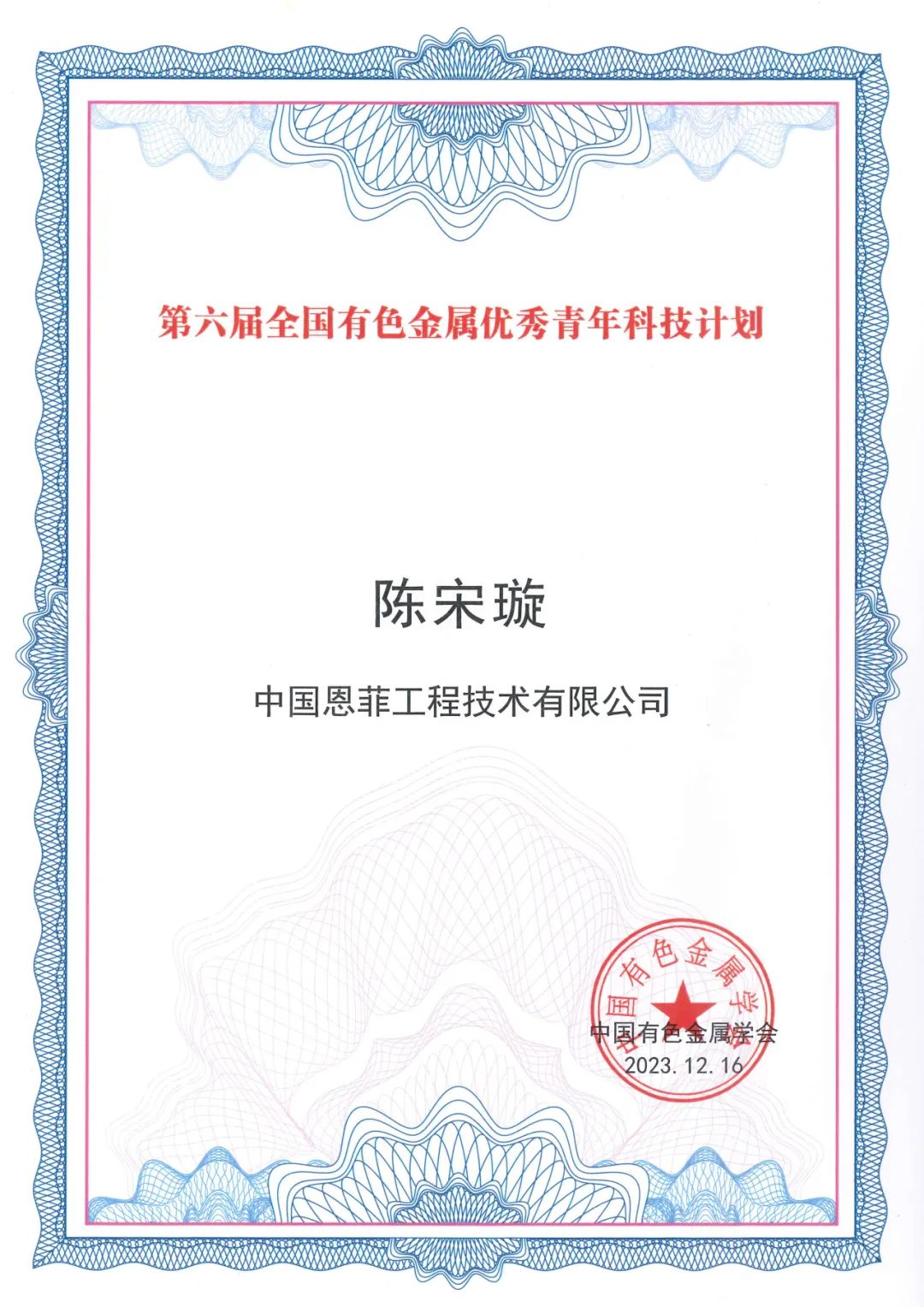 近日,中國恩菲兩位專家入選青年人才計劃,其中郭帥入選中國科協(xié)青年人才托舉工程,陳宋璇入選全國有色金屬優(yōu)秀青年科技計劃。