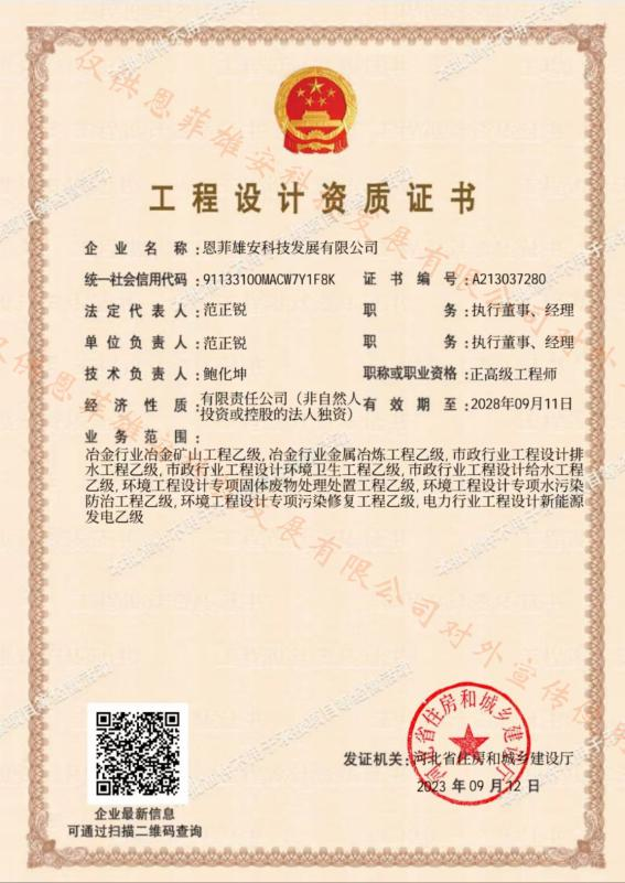 市政行業(yè)給水工程專業(yè)資質(zhì)、市政行業(yè)排水工程專業(yè)資質(zhì)、市政行業(yè)環(huán)境衛(wèi)生工程專業(yè)資質(zhì)(含固體廢棄物處理工程)、環(huán)境工程設(shè)計(jì)污染修復(fù)工程專項(xiàng)資質(zhì)、環(huán)境工程設(shè)計(jì)固體廢棄物處置工程專項(xiàng)資質(zhì)、環(huán)境工程設(shè)計(jì)水污染防治工程專項(xiàng)資質(zhì)、冶金行業(yè)冶金礦山工程專業(yè)資質(zhì)、冶金行業(yè)金屬冶煉工程專業(yè)資質(zhì)、電力行業(yè)新能源發(fā)電專業(yè)資質(zhì)。