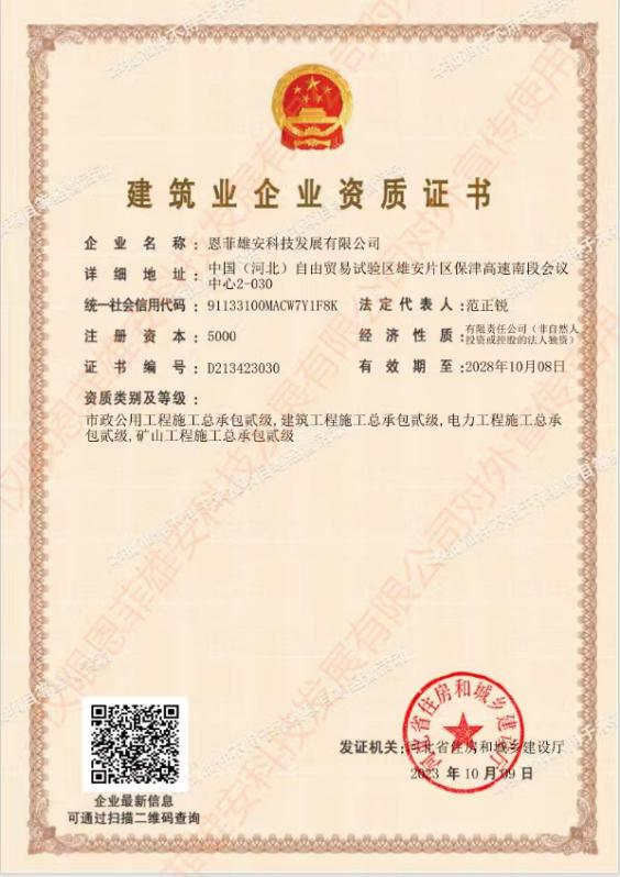 市政公用工程施工總承包二級(jí)資質(zhì)、建筑工程施工總承包二級(jí)資質(zhì)、礦山工程施工總承包二級(jí)資質(zhì)、電力工程施工總承包二級(jí)資質(zhì)。