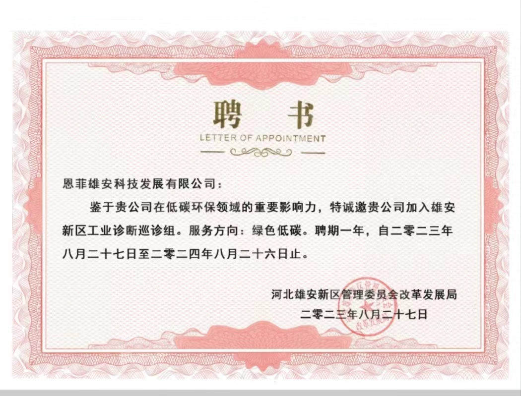 2023年5月,恩菲入圍雄安新區(qū)工業(yè)診斷綠色低碳服務(wù)機(jī)構(gòu)。